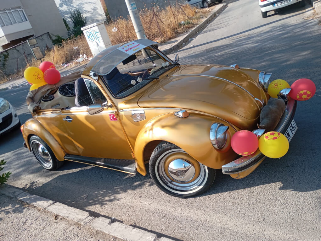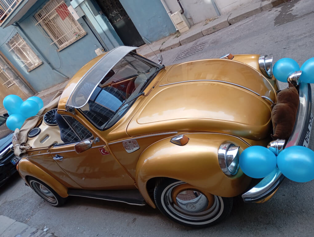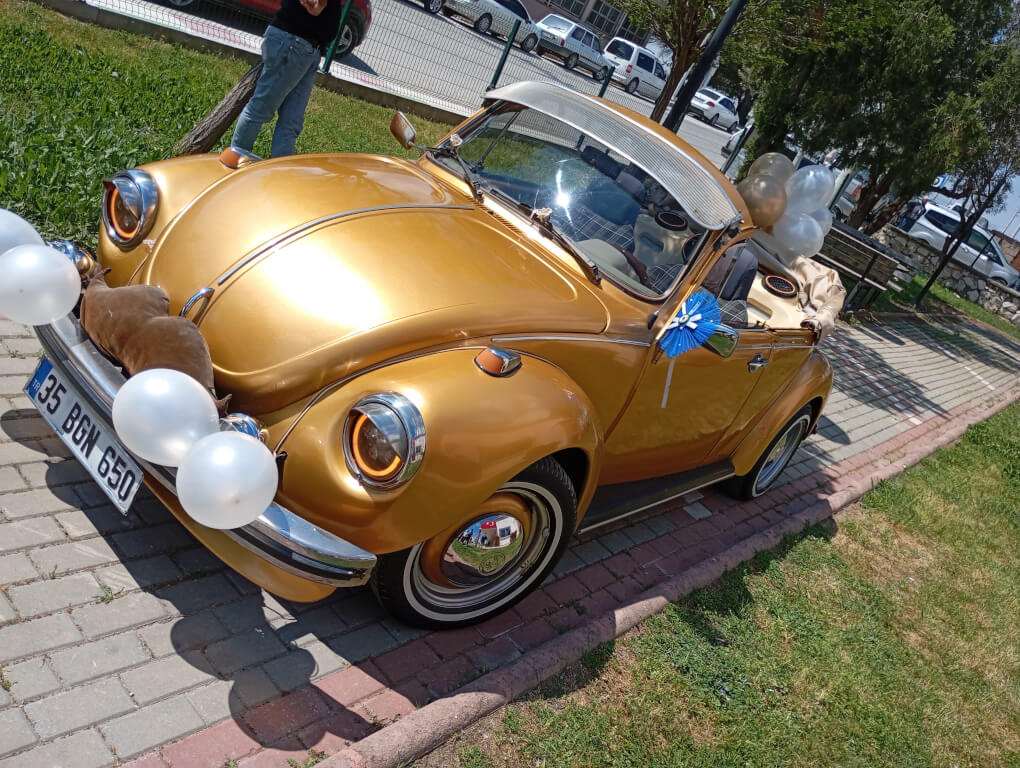 Göz alıcı bir parlaklık, zamansız bir tasarım... 'Altın', adından da anlaşılacağı üzere, düğünlerinizde ve özel etkinliklerinizde parıldamanız için tasarlanmış bir kiralık Vosvos gelin arabasıdır. Bu lüks altın rengi Vosvos, zarafet ve prestiji bir arada sunuyor. Altın, klasik Vosvos çizgisini modern bir yorumla ele alarak, her detayda özeni ve şıklığı ön plana çıkarıyor. Işıltılı bir düğünün vazgeçilmezi olacak bu eşsiz araçla, unutulmaz anlarınızı altın harflerle yazın.