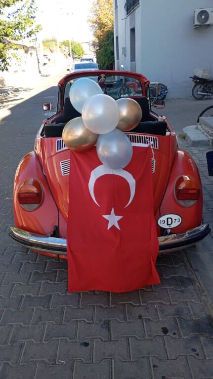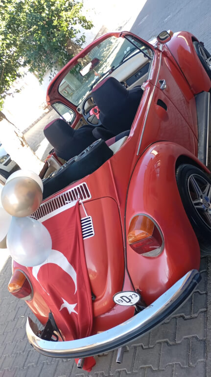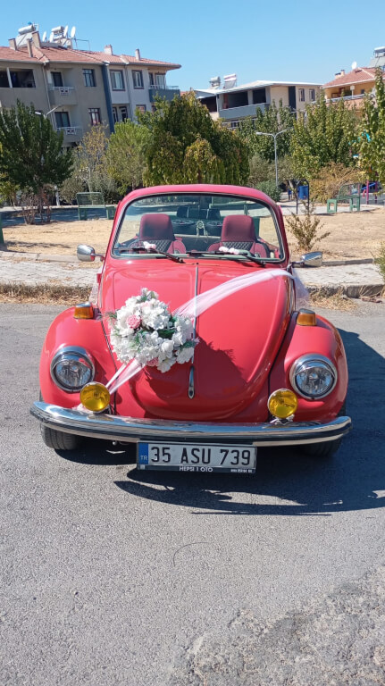 Plakasından da anlaşıldığı gibi adı Asu olan bu kırmızı cabrio klasik aracımız hem sünnet hem evlilik organizasyonlarınızda yanınızda.